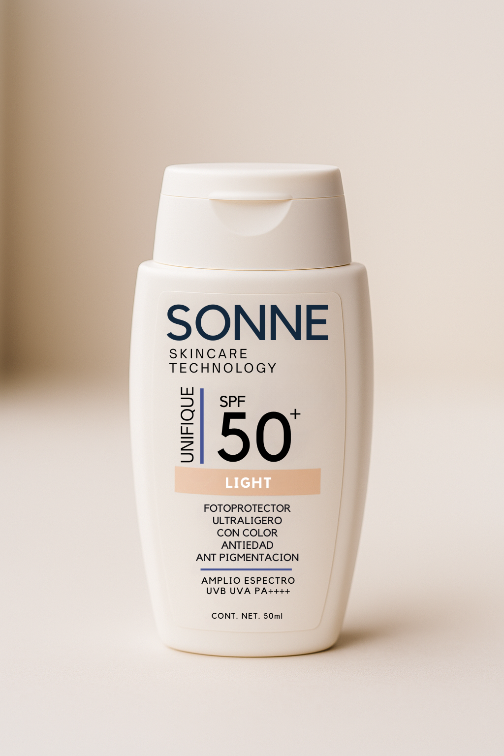 Protector solar ultraligero con color con acción despigmentante y anti-aging que unifica el tono de la piel, con sensación sedosa y ligera que se absorbe rapidamente.